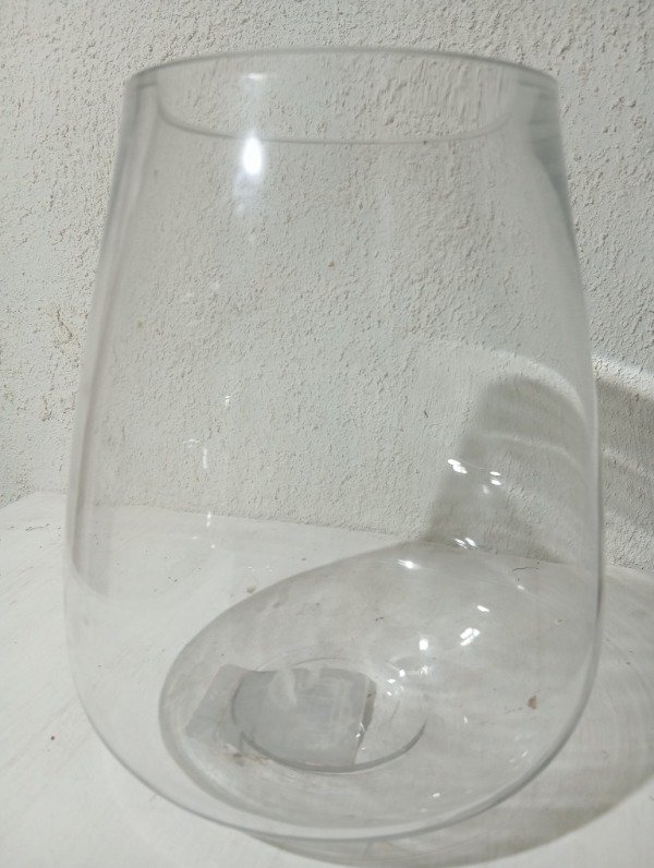 Jarrón de vidrio transparente con diseño curvo y base ancha que se estrecha ligeramente hacia la boca. Su estilo simple y elegante lo hace ideal para usar con flores naturales, arreglos secos o como elemento decorativo minimalista en el hogar.