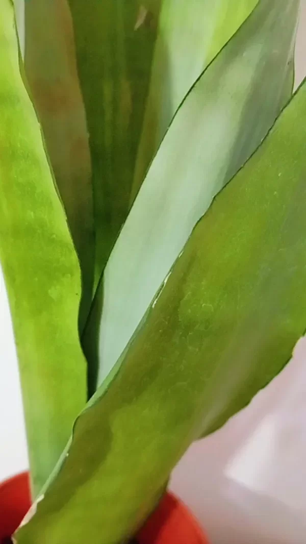Es una Sansevieria , planta de interior muy resistente, de hojas alargada, ideal para ambientes con poca luz y de fácil mantenimiento.