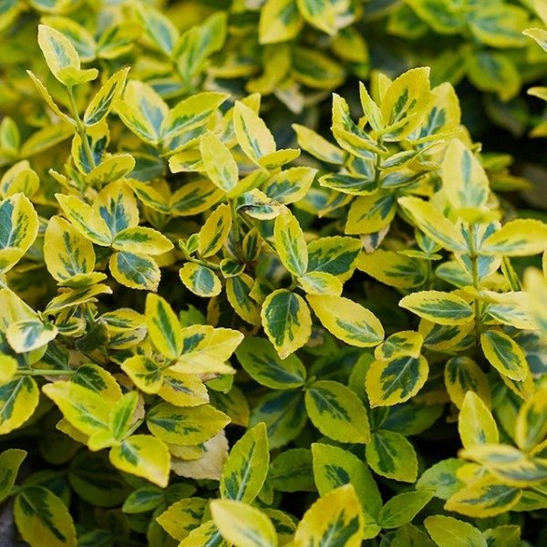 El evónimo dorado (Euonymus japonicus ‘Aureus’) es un arbusto perenne ornamental de hojas pequeñas, verdes con bordes amarillos intensos. Muy resistente y decorativo, se utiliza en cercos, bordes y macetas por su colorido llamativo durante todo el año.